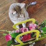 When I was teaching Ikebana, a cat came into the room and looked at flowers.