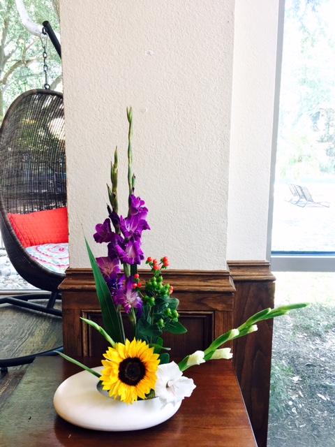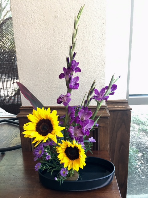 I arranged in Rikka style too. This is very traditional which completed in 15 th. I challenged using flowers very colorful and bright which matched to Texas summer in 21th century. I think very unique, though I used limited kinds of flowers I could use.