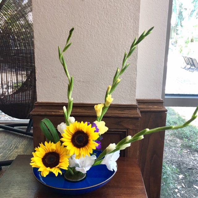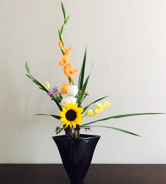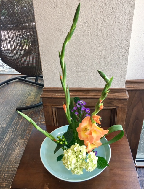 In my Ikebana class my students were so good at using gladiolus and made them into a beautiful Ikebana.