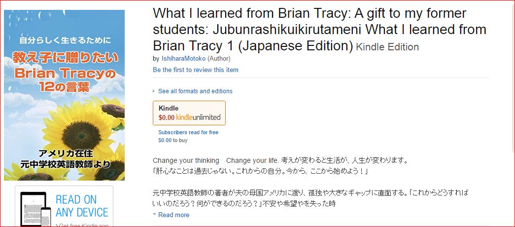 My ebook is free now! It was written with Brian Tracy’s motivational phrases and my experience living in the States. I first published 2013 April and I revised this month August 2916. His words are still working very well and I would like you to live your life with dream and passion. He taught me.