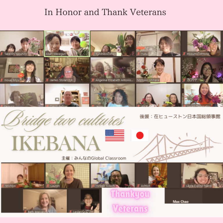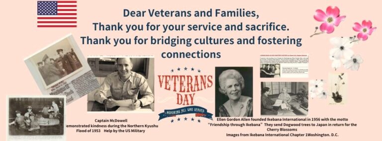 Veterans’ Day Ikebana is an online cultural gathering that honors veterans and their families through the art of Japanese flower arrangement.