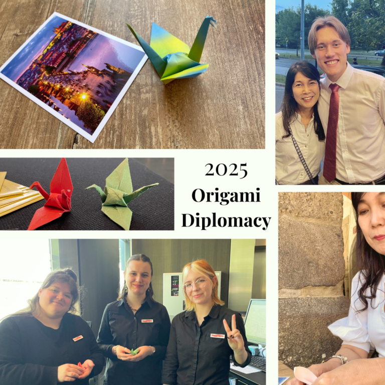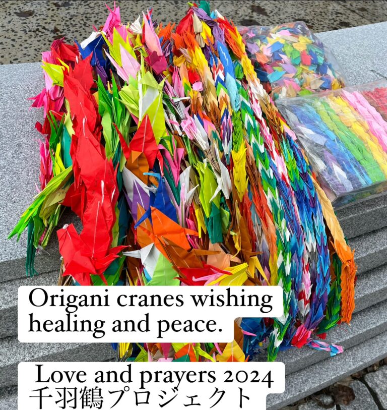 Folding cranes as a symbol of healing, hope, and remembrance. One piece of paper connects us.