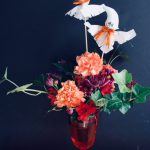 You don’t have to make flower arrangement symmetrical. In Ikebana: the Japanese art of flower arranging we appreciate natural looking, which is asymmetrical design and it looks more lively. Halloween is American culture and Ikebana is Japanese culture.I made a flower arrangement two cultures well blended into a small flower arrangement! I am enjoying two cultures, a Japanese living in the States.