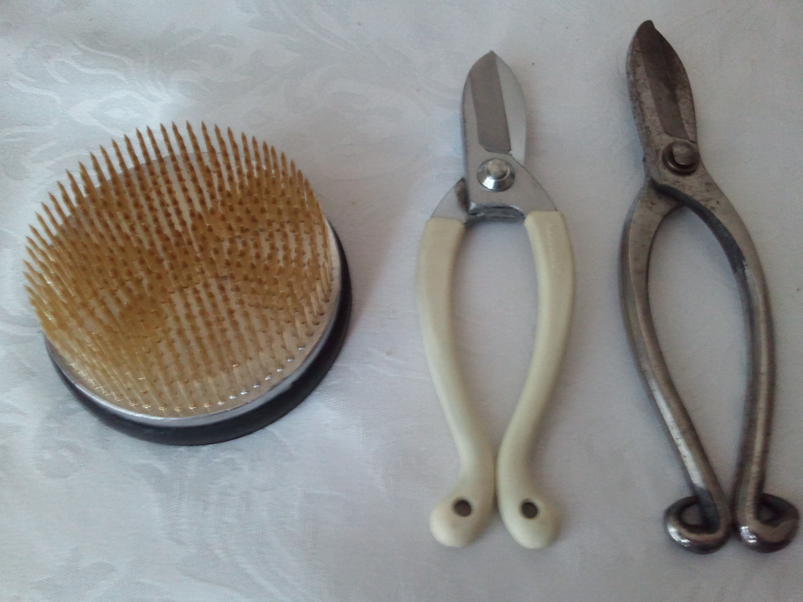 We used Kenzan: you may call frog instead of foam. Successors are made of iron too.