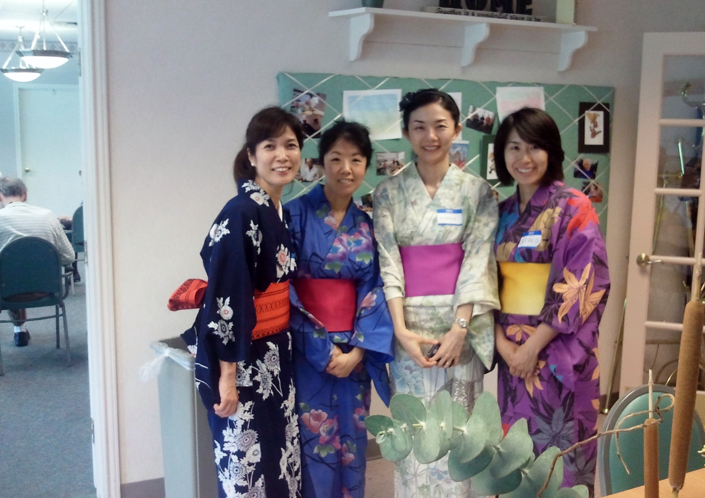 Three of my Ikebana friends (students) joined volunteer. It was a lot of fum. We and residents had a good time. We wore yukata, a sumer cotton kimono. New people, new experiences, and sharing beauty of flowere and people are alwasy nice! I am very happy!