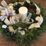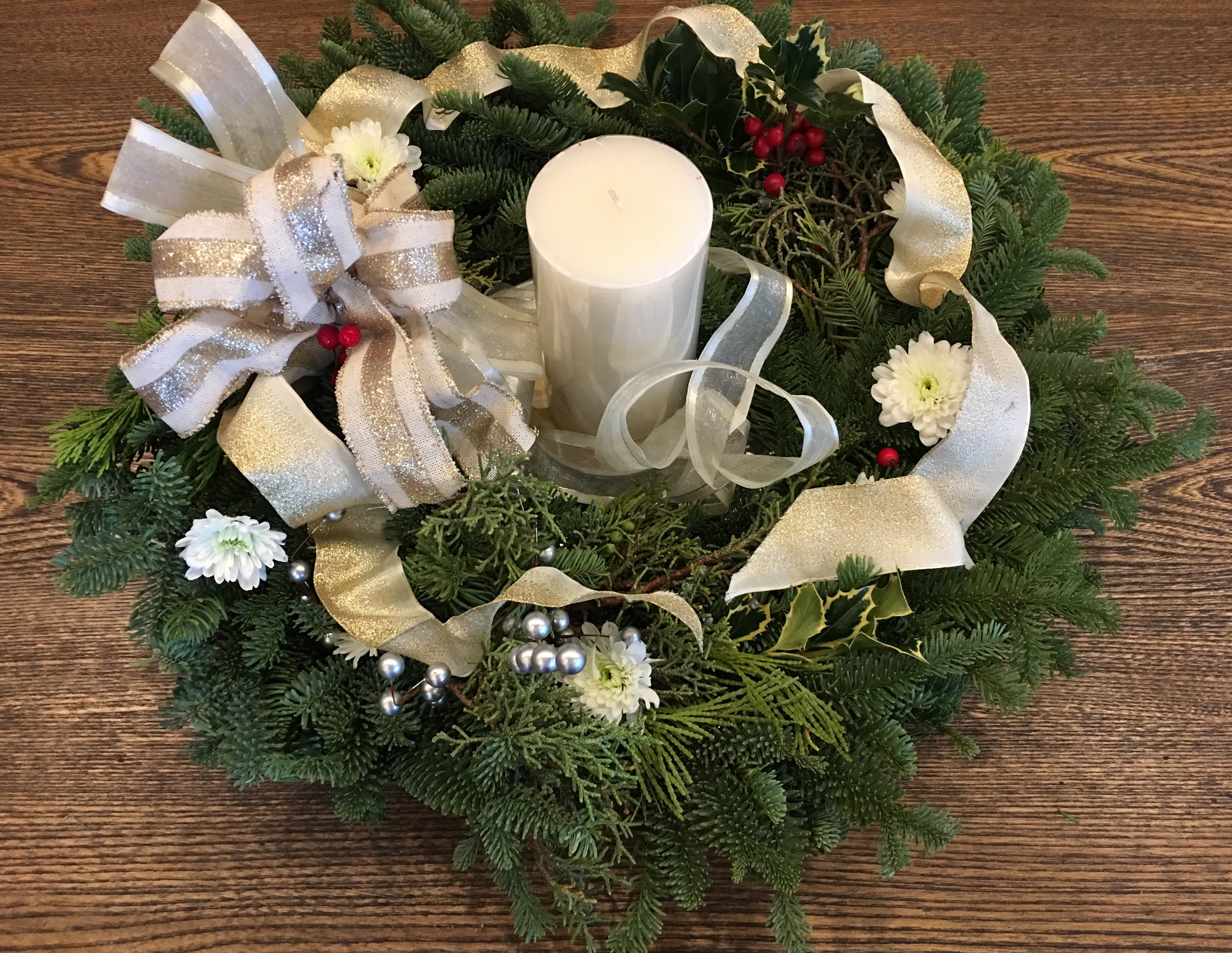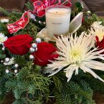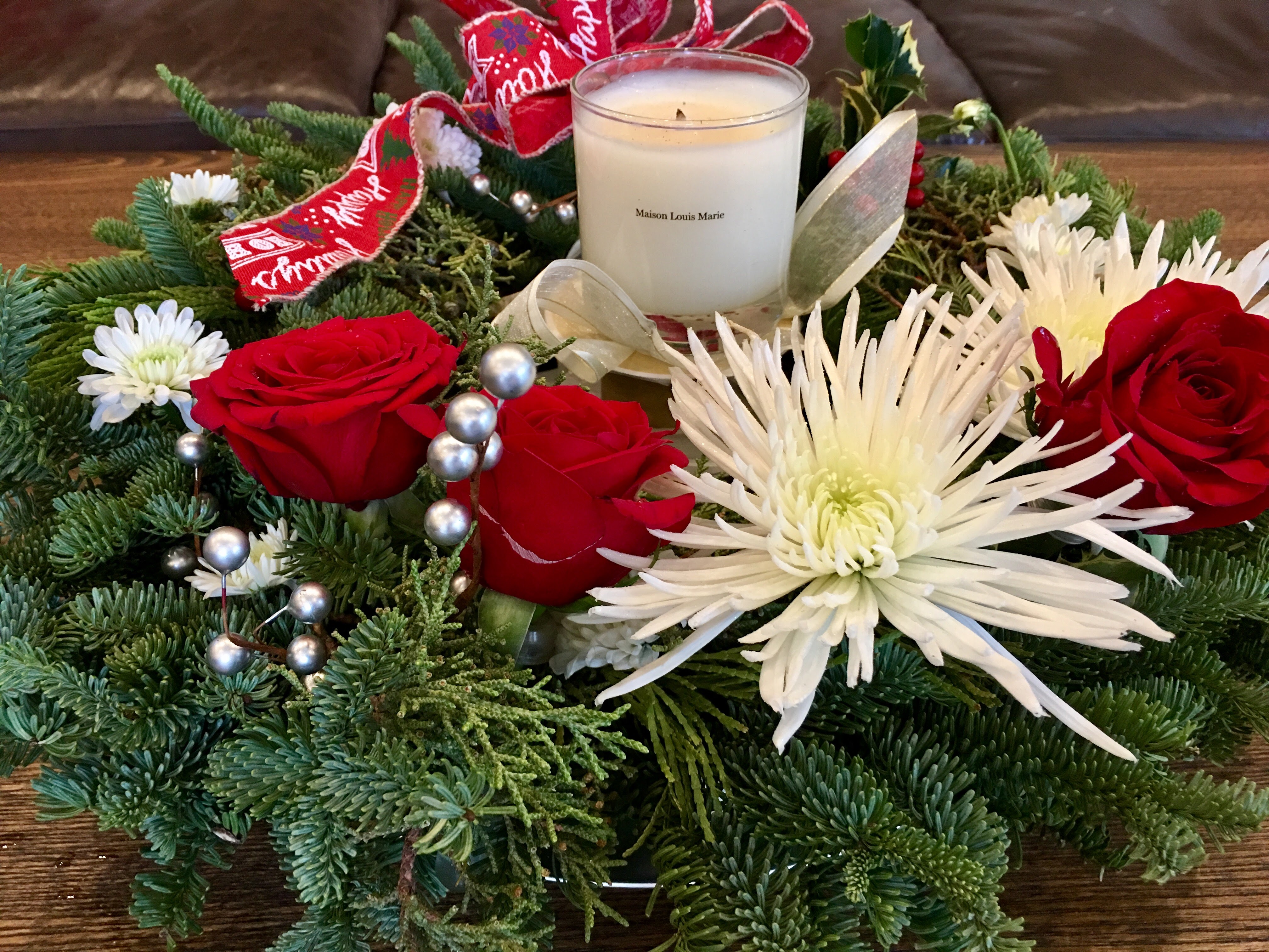 Use Christmas color flowers and greenery. remember to cut flowers very short.